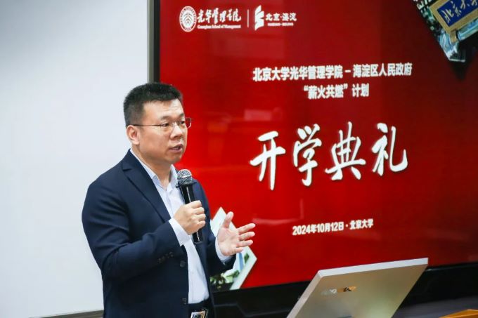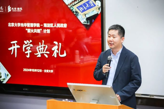 开班仪式上,朴世龙对各位企业家学员们表示欢迎,他指出,“薪火共燃”计划是海淀区加快企业家培养、支持科创人才成长的重要举措,也是北大深度融入首都“四个中心”建设、服务海淀高质量发展的重要平台。根据海淀区的相关要求和参训学员情况,依托“光华思想力”智库平台研究成果,本期培训课程涵盖了经济、金融、战略、营销、组织发展等关键领域,希望能为大家搭建一个交流和提升的平台,帮助大家夯实知识基础、掌握管理工具、拓展综合能力。