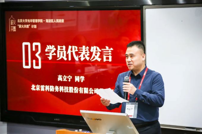 薪火相传,创新不息 10月12日 “薪火共燃”计划第五期开班仪式 在北京大学光华管理学院举行 来自海淀区科创领域的 60位企业创始人 成为“薪火共燃”计划第五期的新学员 共同进行为期半年的课程学习 太阳集团董事长高立宁 参加本期课程 并作为第五期学员代表进行发言