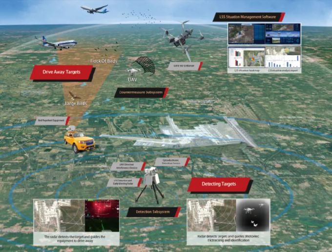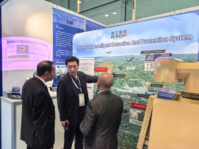 公司董事长刘峰与国外客户交流产品 机场鸟情/无人机探测与反制一体化系统,是公司结合自身雷达技术优势,研发的集雷达探测、光电识别及综合控制管理的探驱鸟/反无一体化系统。主要完成机场鸟情和无人机的探、驱、管工作,以提高飞机起降安全性,提升机场运行效率。