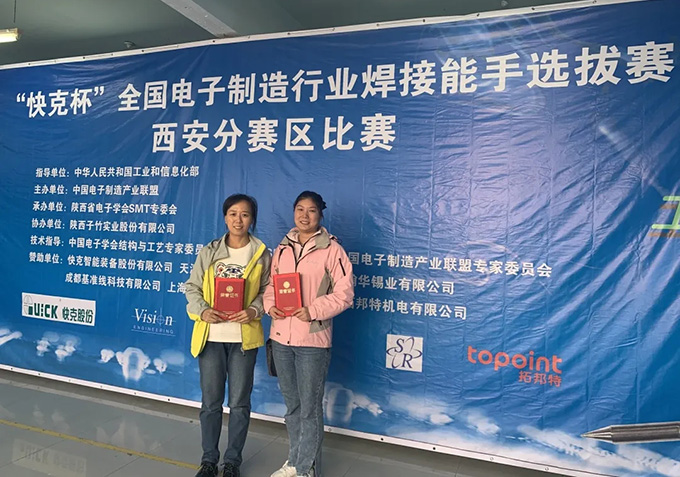 本次比赛以手工焊接为主,重点考核焊接前的检查、过程的质量控制、操作安全意识、遵守操作规程、测试组件的完整性等,所有考核标准均参照国标、国军标、IPC、航天相关标准执行。经过内部层层选拔,公司最终推荐王晓娟、毛洋两位员工参赛。比赛前夕,两位参赛选手不断翻阅《手工焊接大赛规则》和《手工焊接要求及验收标准》这两份参考资料,将所有规则要求熟记于心,并对其中的模糊工艺操作进行反复推敲,力求在比赛中能够展现出最好的自己,为公司争光。辛勤备战汗水不会白流。经过一天四场的紧张比赛,王晓娟、毛洋分别获得本次比赛第一名和第四名的好成绩。