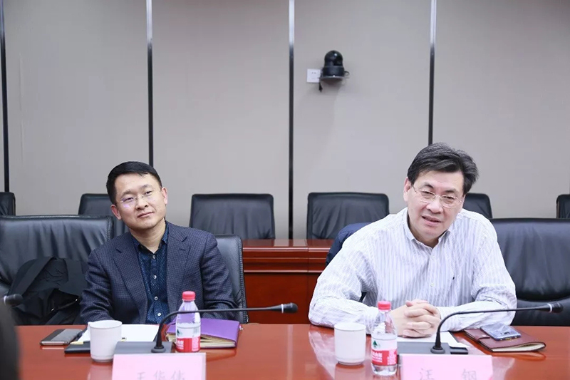 戴斌董事长向汪钢、王华伟副局长介绍了公司发展历程、产业布局以及科技成果转化等相关情况,其中重点介绍公司军转民、民参军以及军民两用产品的技术研发、成果转化、市场应用等相关情况。